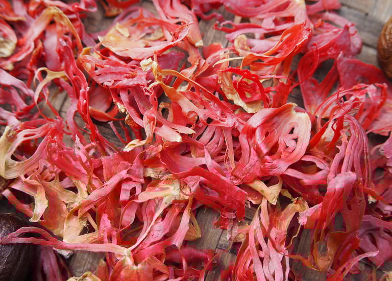 Mace is the delicate outer covering of the nutmeg seed. It has a refined aroma and slightly sweeter flavor compared to nutmeg, making it highly valued in gourmet cooking and spice blends.