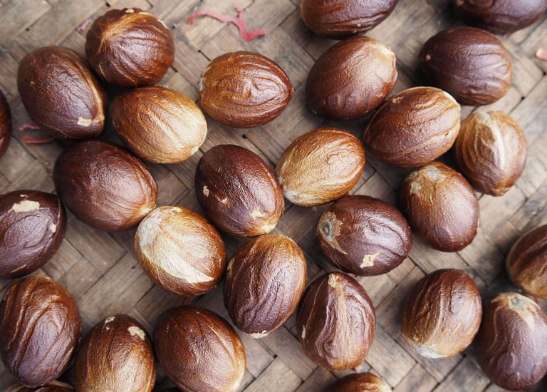 Whole nutmeg sourced from Indonesia, the historical home of nutmeg production. Highly valued for its warm, sweet flavor and aromatic oils used in both culinary and industrial applications.